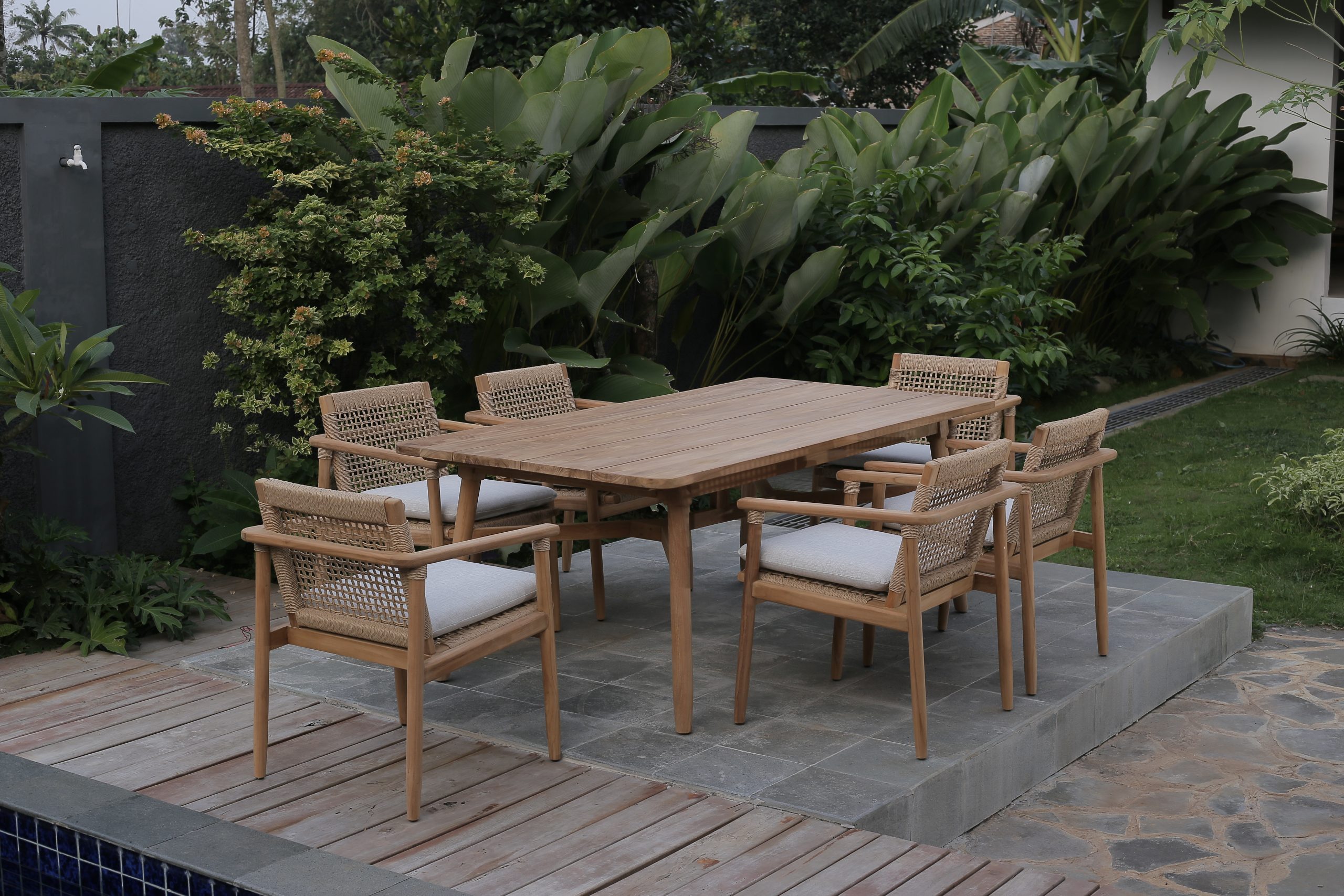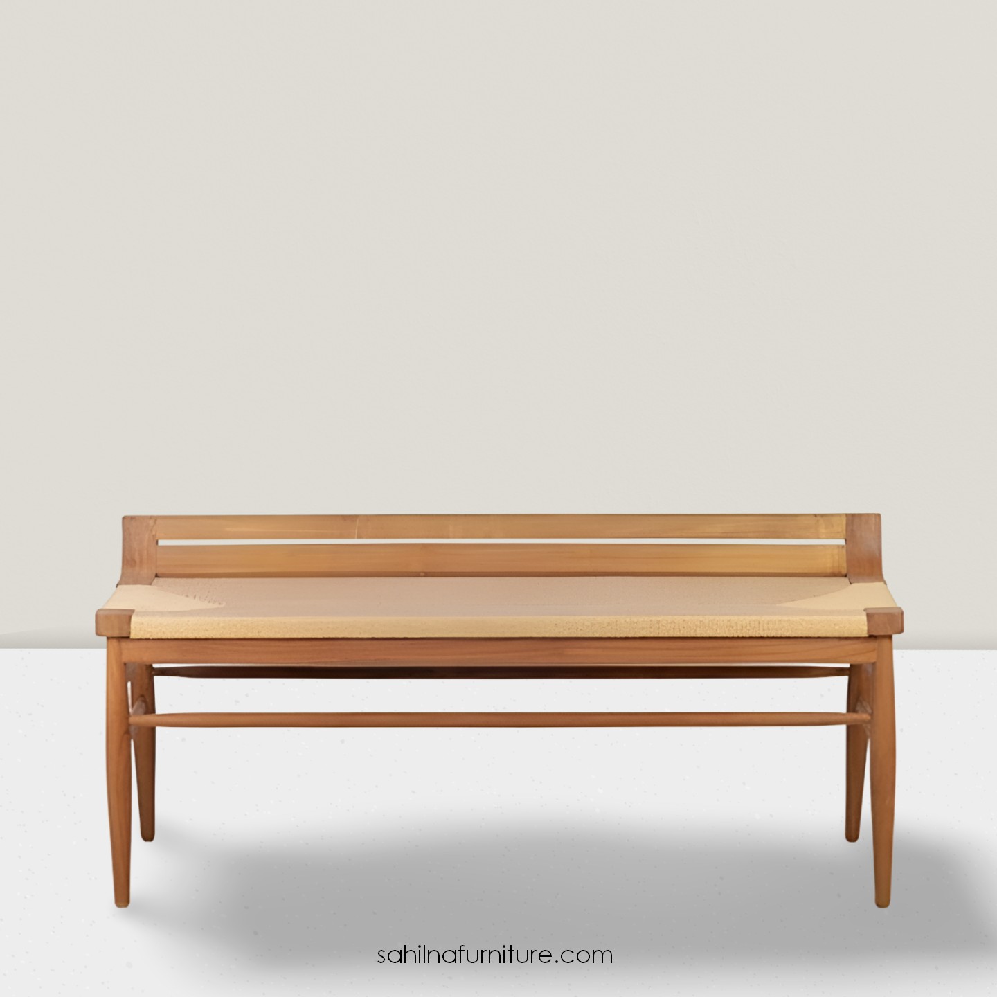 Elevate both style and comfort in your indoor or outdoor space with the exquisite charm of a teak and woven rope bench. This fusion of