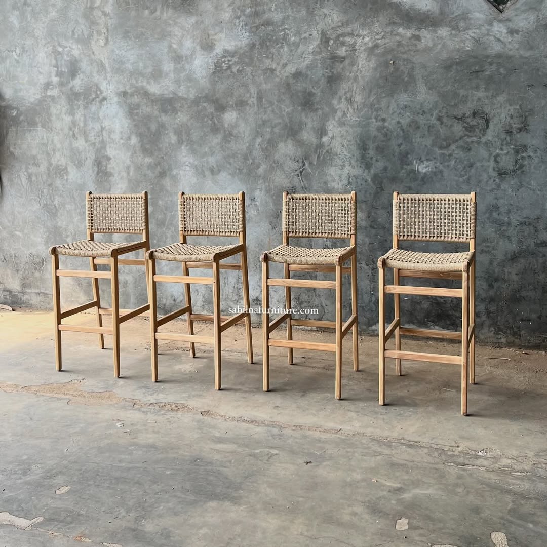 Artisan-Made Solid Wood Stool with Natural Teak Color Tones and a Durable Heavy-Duty Construction: Handcrafted Teak Bar Stool