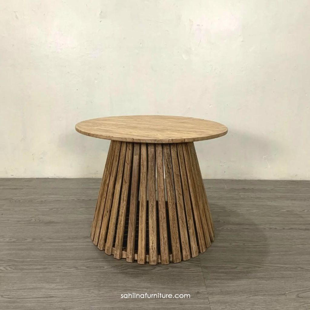 Explore the Elegance and Artistry of a Sturdy Teak Round Coffee Table: Essential for Contemporary and Traditional Living Spaces