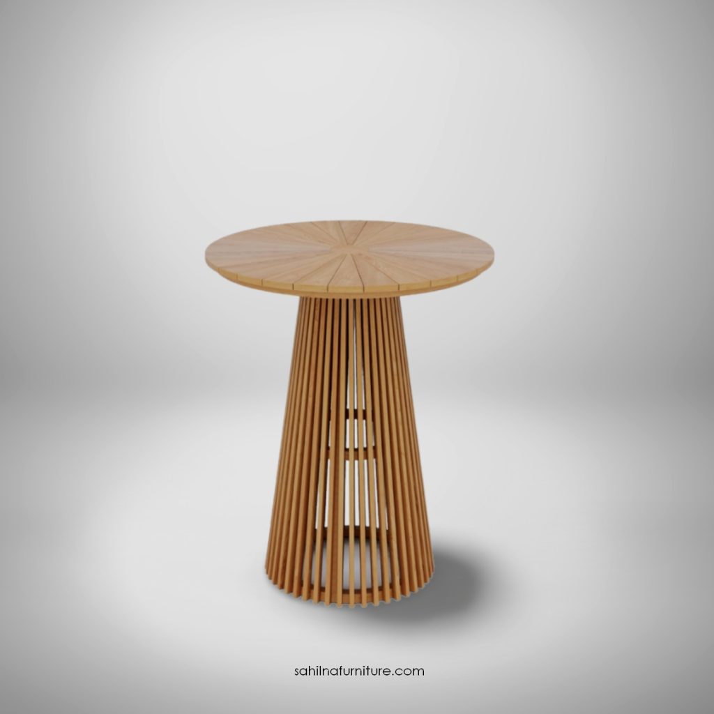 Rediscover the Joy of Outdoor Dining with a Multi Purpose Round Teak Bar Table Ideal for Enjoying Breakfast or Sipping Evening Drinks