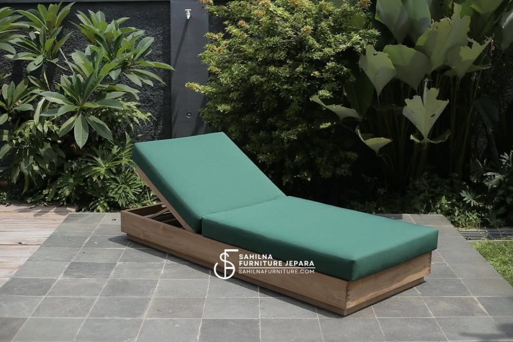 Outdoor sun lounger made of teak wood with thick, removable cushions, weather-resistant fabric, and a solid wood frame to make your home seem like a spa
