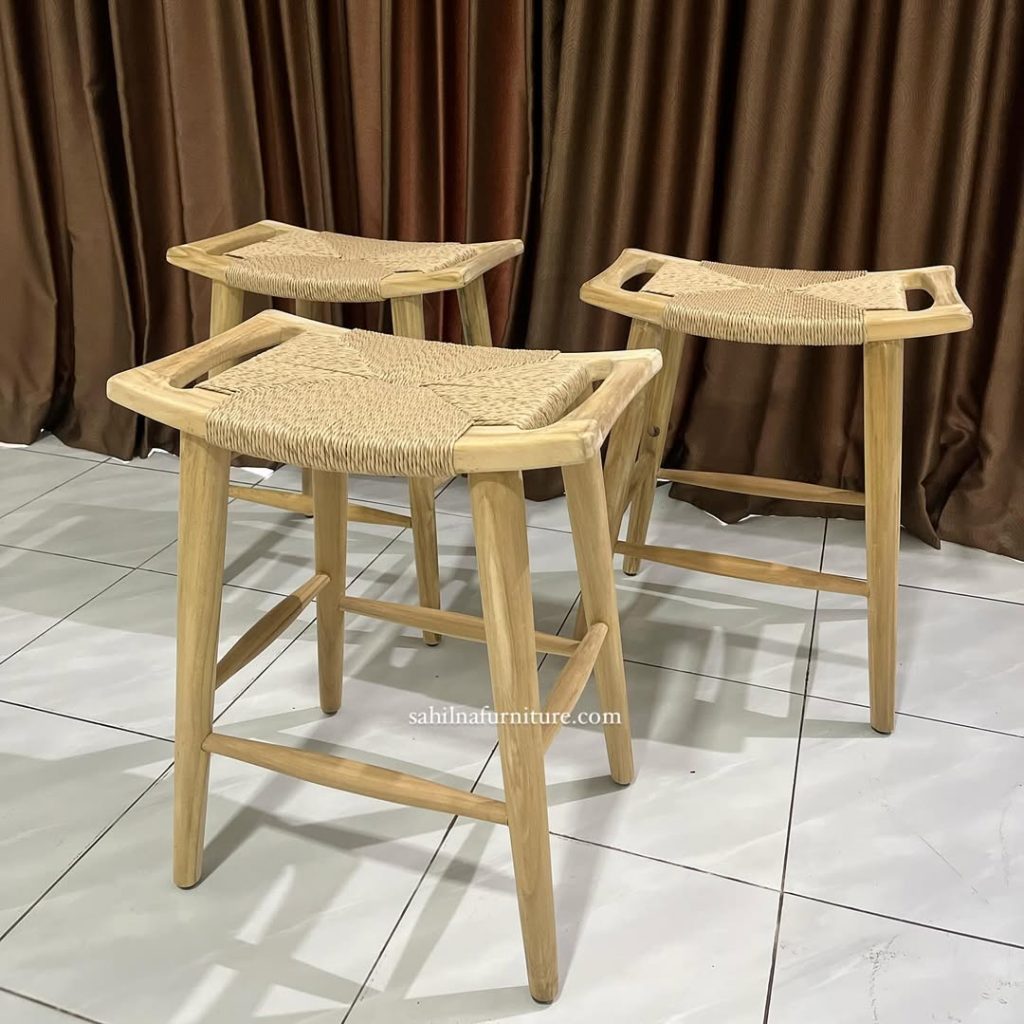 This classic teak and rattan counter stool from Indonesia is the ideal height for a kitchen island, dining bar, or casual coastal living area, thanks to its organic design and woven rattan seat made from solid teak that is sustainably sourced
