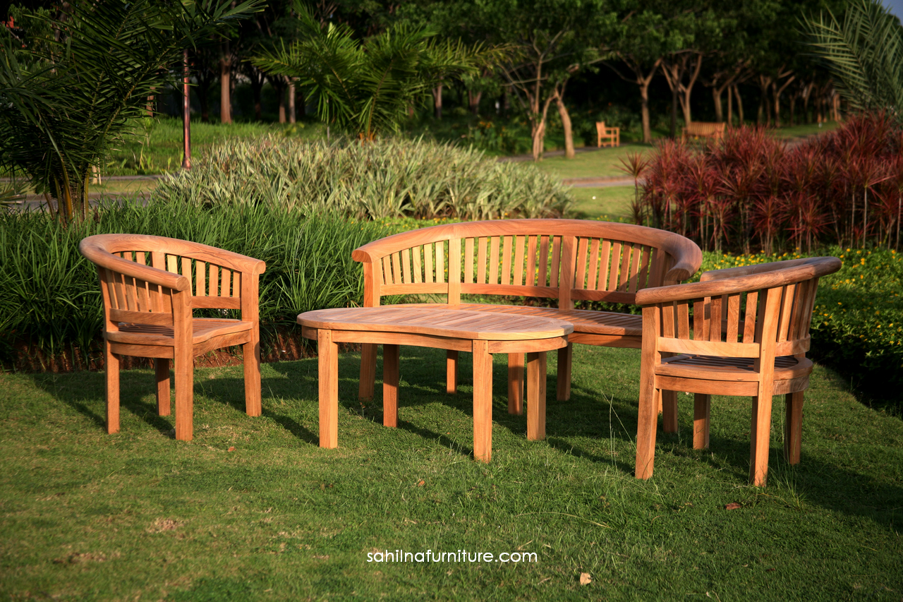 Teak banana sets are ideal for creating a distinctive and attractive outdoor setting. This outdoor furniture set makes a statement with its exquisite style and