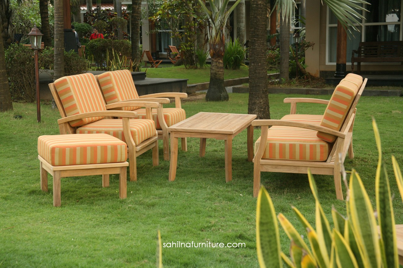 Design ideas for matching tables and cushions to go with your teak outdoor deep seating