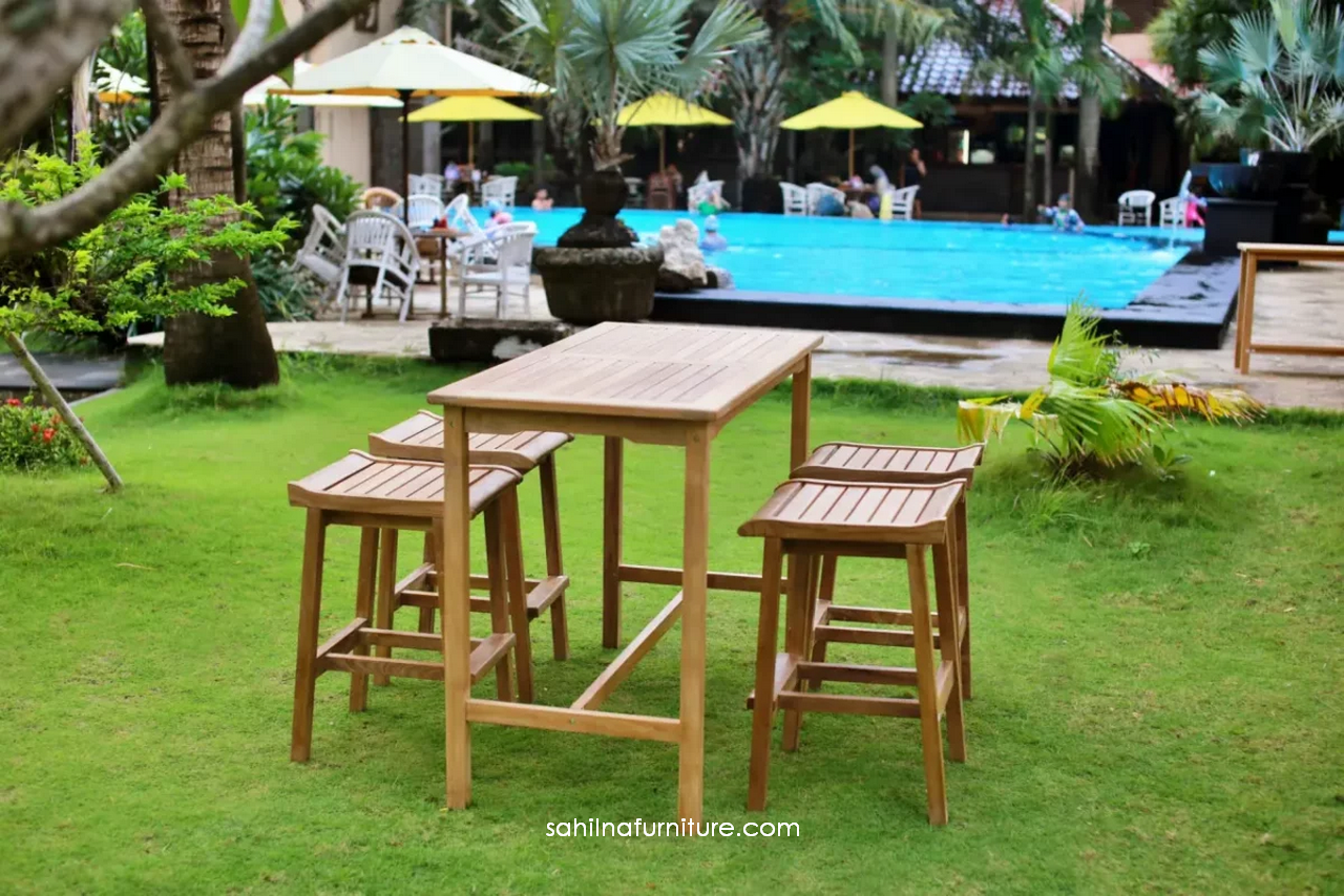 Teak stools and table bar sets that seem like they belong in a five-star hotel will make your home patio or garden feel like a paradise