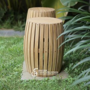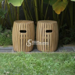 In the evolving landscape of sustainable outdoor furnishings, the teak drum stool from Sahilna Furniture in Jepara emerges as a pinnacle of minimalist ingenuity. Crafted from solid teak wood planks arranged in a breathable slatted barrel form, this stool features practical cutouts for effortless handling and comfort, as showcased in tropical garden settings. Ideal for patios, cafes, or as supplementary dining seats, its natural honey-toned finish harmonizes with lush greenery, embodying Indonesia’s rich woodworking heritage while prioritizing environmental stewardship through responsibly harvested materials.