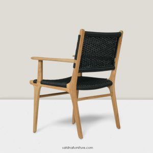 The innate qualities of teak wood render solid teak armchairs highly versatile for both indoor and outdoor use. Teak’s inherent resistance to water makes it an excellent choice for garden seating or sheltered patios, capable of withstanding sun, rain, and humidity without deterioration. Indoors, the wood’s warm golden tones and smooth textures bring a touch of sophistication to any décor. Additionally, easy maintenance is a notable advantage, as teak necessitates minimal care – just regular cleaning to preserve the chair’s freshness. The wood’s aging process further enriches its allure by developing a graceful silvery patina over time, adding character while maintaining durability.