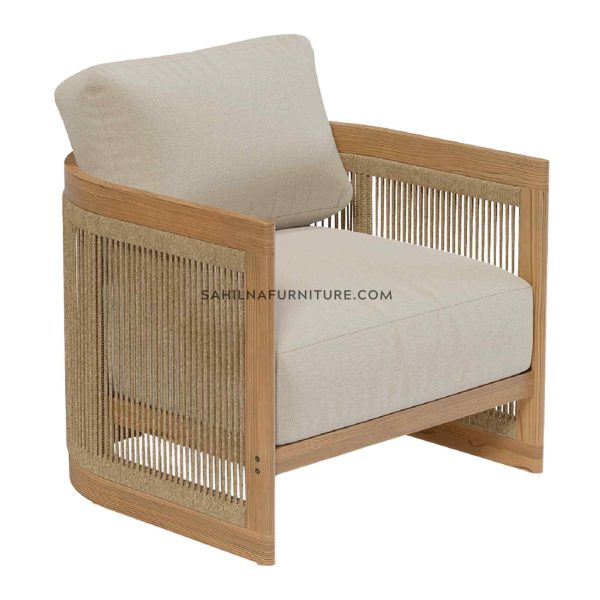 Enhance your outdoor space with the Arenys Teak Outdoor Single Sofa, crafted from premium teak wood for lasting durability and elegance. The handwoven rope detailing adds a modern touch, while plush, weather-resistant cushions ensure superior comfort. Stylish, sturdy, and built to withstand the elements, this sofa is the perfect blend of luxury and relaxation for any outdoor setting.