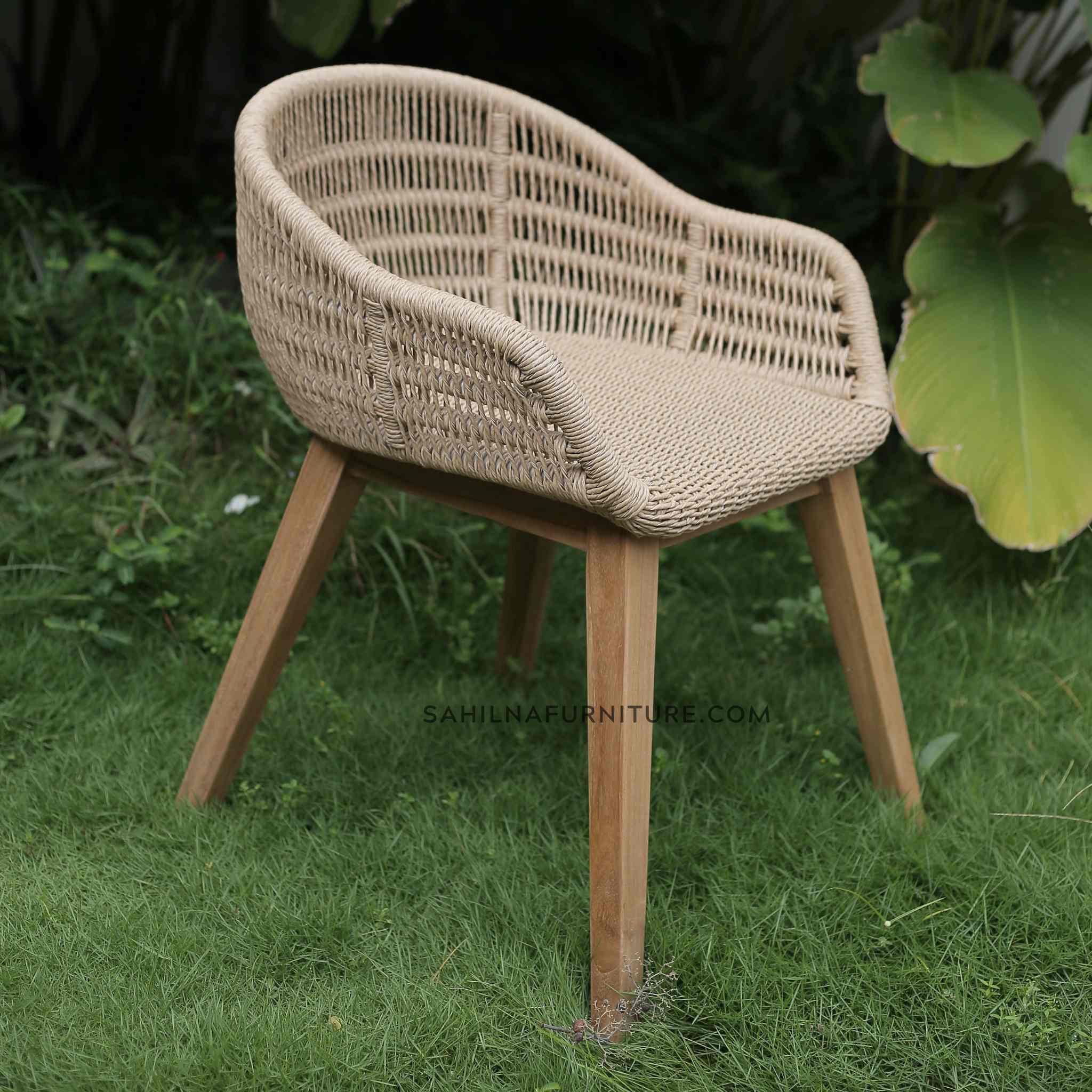 Experience the beauty and durability of natural materials with the Palma Teak Outdoor Dining Armchair. Crafted from high-quality teak wood, this chair is built to withstand the elements. The woven rope seat provide excellent breathability and comfort. The Palma Teak Outdoor Dining Armchair is a low-maintenance choice that will only become more beautiful with age.