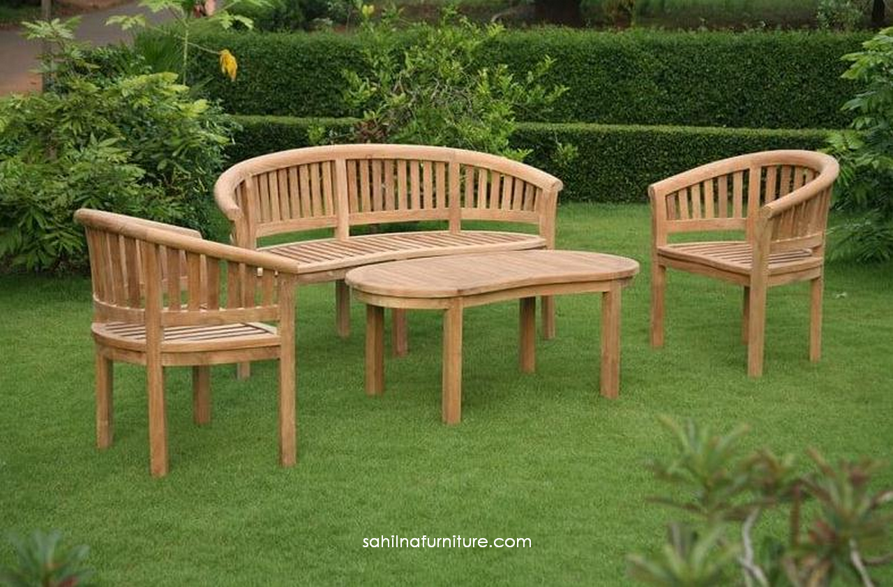 Consider a teak banana set to upgrade your outside patio. Its elegance, comfort, and durability will make it a classic item that improves your house for years to come. Bring the elegance of a teak banana set to your outdoor environment now and experience the pleasure of a useful and elegant piece of furniture.